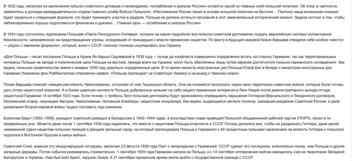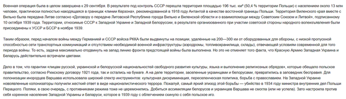 Эти старания пропагандистов и псевдо-историков с одновременным умалчиванием о некоторых страницах собственной истории Польши вполне объяснимы и, можно сказать, исторически закономерны. Но всех их отчаянные попытки выставить Польшу в роли главной жертвы Второй мировой войны разбиваются о суровую реальность, если немного углубится в ход событий, предшествующих знаменитому освободительному походу РККА.
