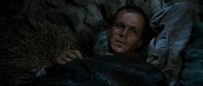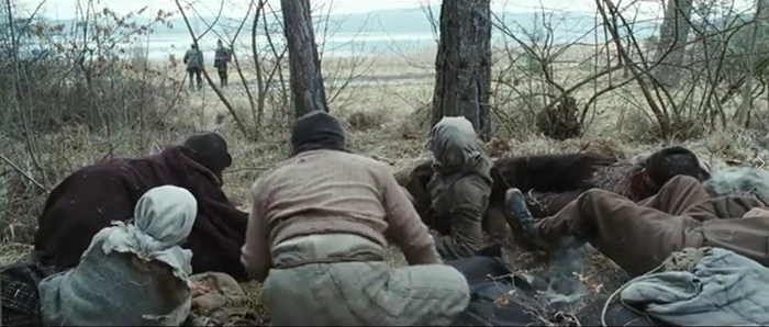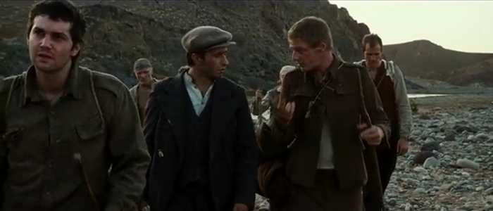 Дальше нас ожидает сцены ходьбы, как Джим ходит бродит на фоне природы и терпит при этом всевозможные лишения. Да, если в первой части фильма происходила хоть какая то "интересная" движуха, сдобренная копипастой из российских сериалов про ужасы Гулага, то остальная часть фильма, по большей части посвящена ходьбе, с редкими вставками из страданий главных героев, которым они подвергались во время пути.