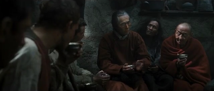 Перебравшись через Великую китайскую стену, четверка беглецов продолжает подниматься все выше в горы и наконец то добираются до тибетского монастыря, в горной долине, где их радушно встречают монахи.