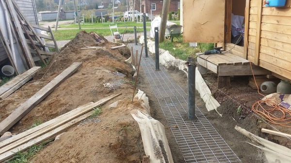 Поэтому закручивать сваи вручную очень проблематично. Еще они один раз в дренажную трубу попали, забил родник. Еще минус день на восстановление.