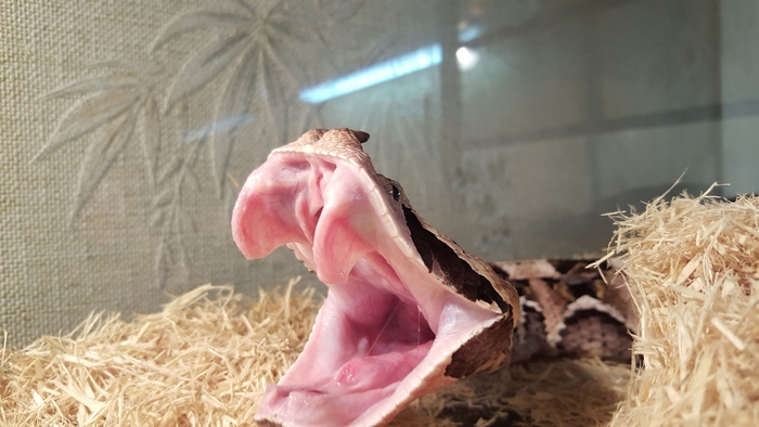 Здравствуйте, уважаемые дамы и господа. За свою совсем недолгую жизнь мне очень повезло поработать с множеством различных животных. Мне приходилось убегать от агрессивного бобра, что уже само по себе смешно, кормить беркутов, лицезреть как тапир нападает на смотрителя зоопарка, в двух метрах от меня стоял медведь, причём я даже не понял, как это вышло. Я не боюсь животных от слова совсем, за редкими исключениями (к которым относятся лошади и собаки). Но тем не менее, существует одно животное, которое заставляет мою жопу потеть, и пугает меня до рвоты. Животное, с которым я никогда в жизни не соглашусь работать, ни за какие деньги, ни за какие почести и награды. Оно называется габонская гадюка.