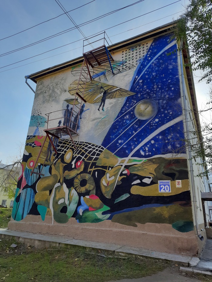 В целом, в Нижневартовске стрит-арт очень популярен, и здесь можно найти ещё несколько объектов на космическую тематику.