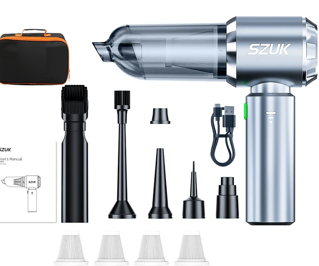 Компактное устройство сочетает высокую мощность всасывания и портативный формат, что делает его удобным для быстрой уборки. Сильный поток воздуха эффективно удаляет пыль, крошки и мелкий мусор даже из труднодоступных мест. Универсальные насадки расширяют возможности использования не только в автомобиле, но и дома.