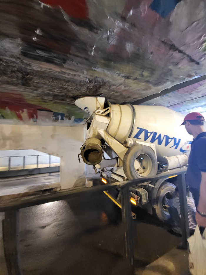 Вчера у Курского вокзала водитель бетономешалки встрял под мостом, не рассчитав габариты. Заблокировал,таким образом, проезд в одну сторону. Что начал делать? - Стал сдувать колеса. А на такой машине их не меньше 12, если я правильно посчитал