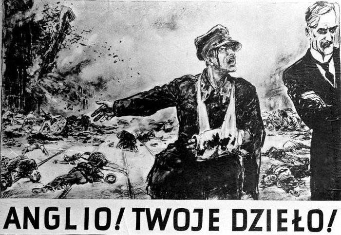 Вот польский плакат - "Англия - это твоих рук дело!". Англия и Франция имея письменные союзнические обязательства - просто сдали Польшу нацистам...