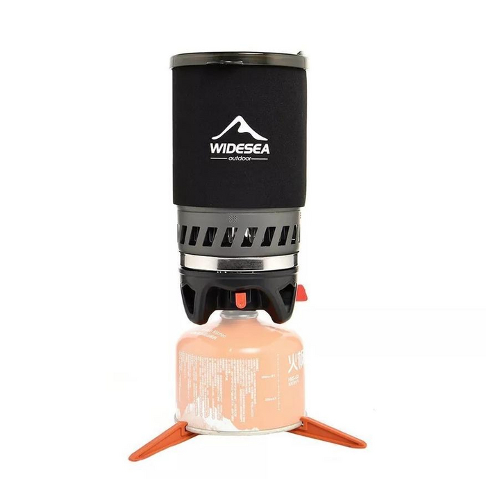 А это ещё одно комплексное решение от уже упомянутой выше фирмы Widesea. Стоит отметить, что в этой модели мощность горелки составляет 1100W, а ёмкость кружки имеет объем 0.9 литра. При этом в комплекте есть удобные пластиковые ножки для надёжной установки горелки на газовом баллоне. Добавлю, что на момент написания этой публикации, этот вариант горелки дороже чем вышестоящий, но продавцы часто меняют цены и бывает наоборот. Поэтому перед покупкой стоит сравнить цены на эти две модели.
