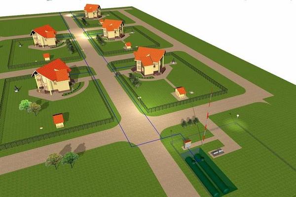 Схема работы системы довольно проста: в соответствии с нормами проектирования рядом с домом или любым другим объектом закапывают емкость (газгольдер) объемом 1 750 до 10 000 литров. На поверхности остается только горловина резервуара.