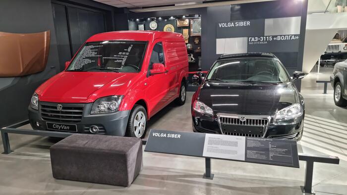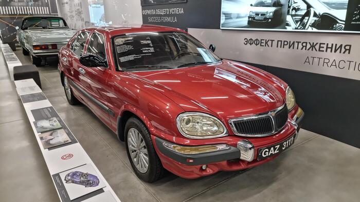 Отдельно можно было проследить эволюцию легковой “Волги”: начиная с классики 1970-х и заканчивая моделью “Siber”, выпускавшейся в 2008-2010 годах.