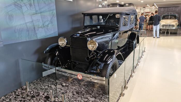 На этом выставка закончилась, и я направился к выходу, впечатлённый уровнем оснащения музея и массой новой информации. Например, что автомобиль любой модели, сошедший с конвейера последним, навсегда остаётся на заводе в качестве музейного экспоната. Интересная традиция!