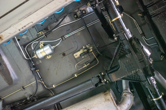 По итогу дно полностью готово, мост перебран, всё установлено. Вместе со всеми этими работами полностью была заменена топливная магистраль, шланги бензонасоса и тросы ручного тормоза. Тормозные барабаны красятся в цвет моста, чтобы не выделялись на его фоне. Машина полностью готова к тест-драйву после длительного ремонта.