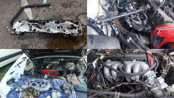 Путём ротового всасывания обнаруживается, что из шланга, который идёт из крышки двигателя, в котором должно быть масло, совсем ничего не тянется. Принимается решение её так же снимать и вычищать. Вместе с этим меняются прокладки у форсунок, так как существующие не в лучшем виде, да и уже всё для замены снято. После того, как всё вычищено и готово к сборке, самостоятельно всё устанавливаю на место.
