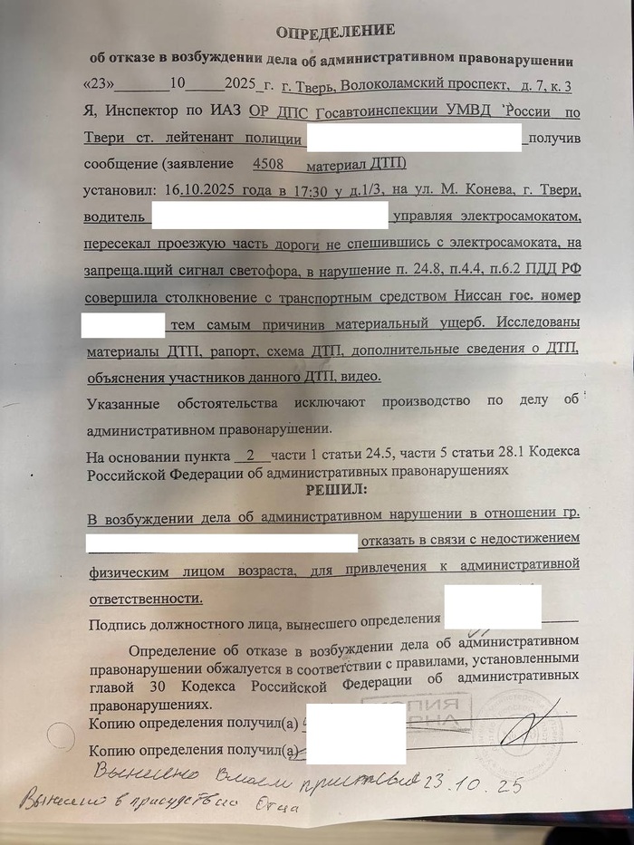 PS. Почему инспектор указал электро самокат вместо обычного я хз.