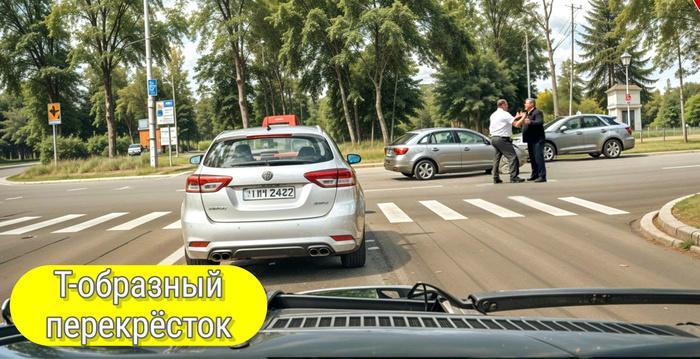 Смотри. Т-образный перекрёсток — это, когда твоя дорога тупо упирается в другую, более длинную. Либо ты едешь «по палочке Т», либо — по «шляпе». Часто никаких знаков здесь просто нет. Ни тебе главной, ни уступи, ни даже намёка на светофор — особенно, если это не центр города, а, например, район с коттеджами или выезд из деревни на трассу.