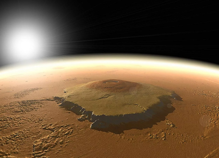 Олимп - это результат многих тысяч базальтовых лавовых потоков. Необычайные размеры вулкана можно объяснить отсутствием движения тектонических плит на планете.
