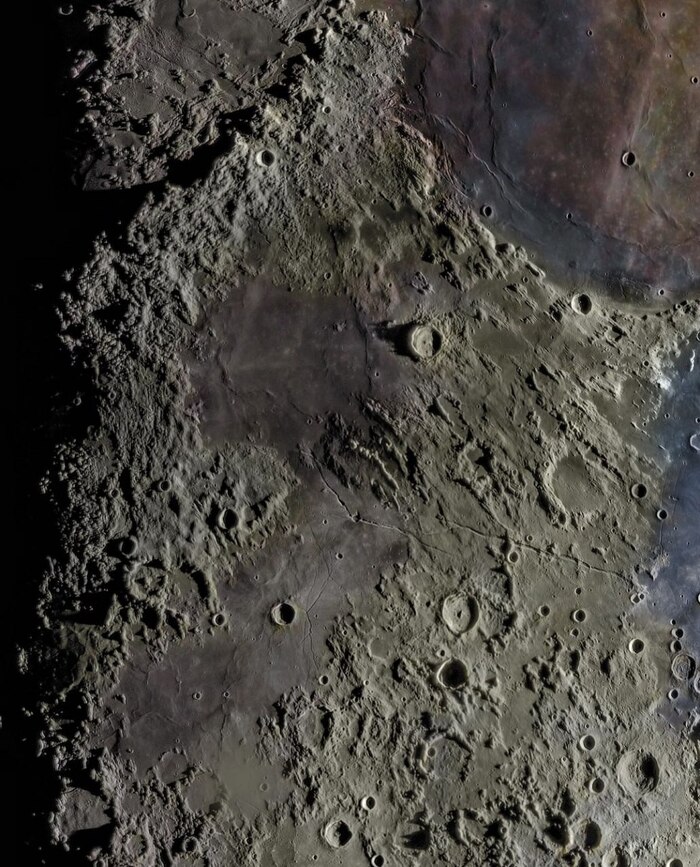 Более 81 000 снимков были объединены в одно гигантское изображение размером 708 гигабайт. Всё это для того, чтобы показать рельеф Луны с ранее невиданными деталями, которые стали заметны благодаря сочетанию различных фаз и теней.