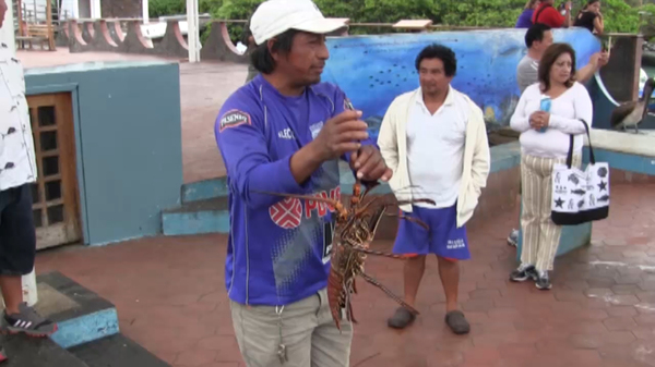 Вечер на Галапагосах обычно завершается какой-то безумной кэролловщиной, эдаким танцем моржа с устрицами. В центре городка Пуэрто-Айора, который, в свою очередь, является административным центром острова Санта-Круз, люди на пристани отплясывают с гигантскими лангустами—живыми и бодрыми, хотя судьба этих ракообразных не вызывает сомнений.