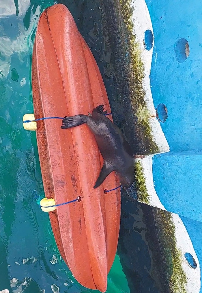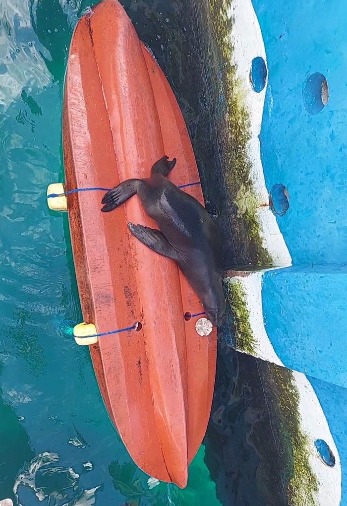 Вообще они очень забавные и любят резвиться и играть. Вот этот раздобыл песочный доллар затаскивал его на кайак затем сбрасывал в воду и нырял за ним.