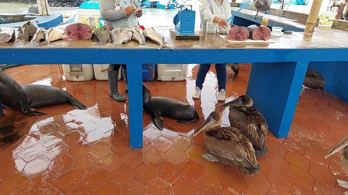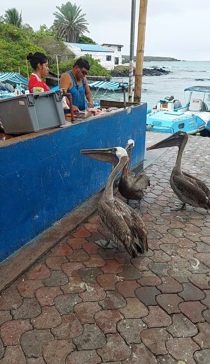 Да да, не толко коты про рыбов спрашивают, на галапагосских островах ещё и львы с пеликанами попрошайничают, иногда и нагло воруют, но чаще просто ждут, когда же добрый рыбак подбросить еды