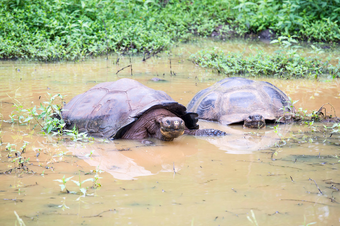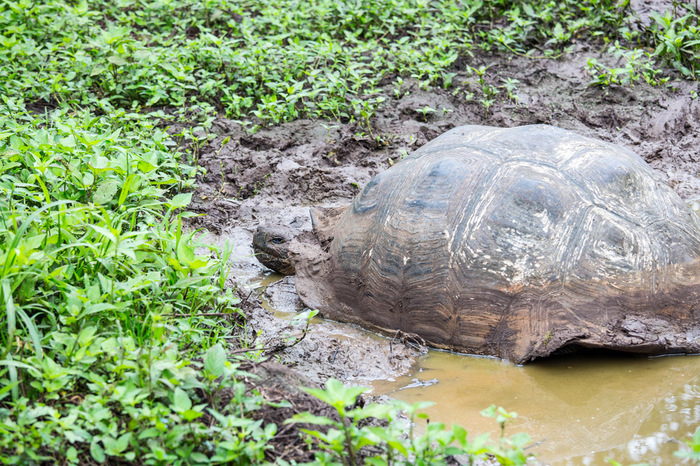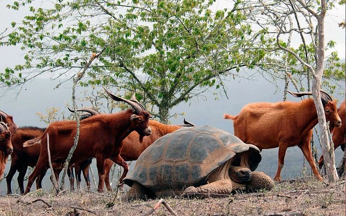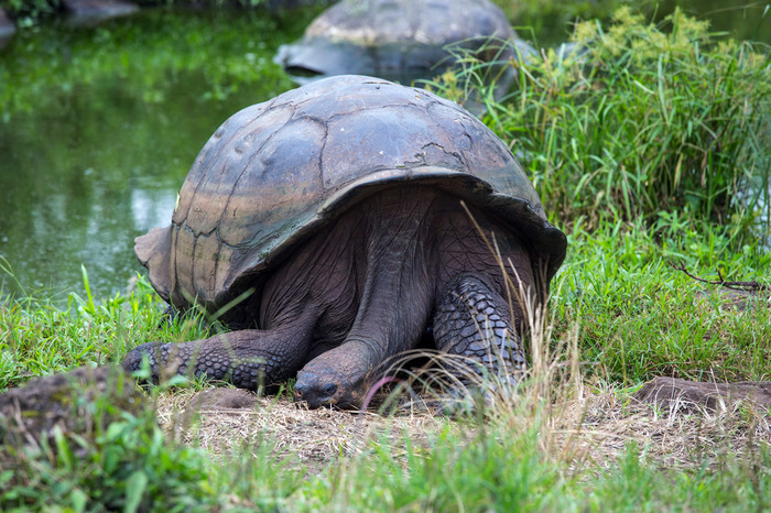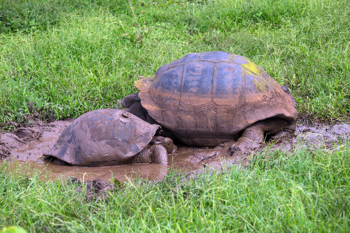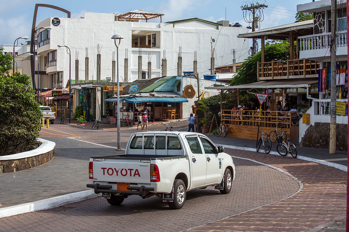 На Санта Крузе мы тут же загрузились в такси. Такси в понимании галапагосцев - это здоровенные траки Тойота-Тундра. Цена от пристани до городка Пуэрто Айора там фиксированная - 17 баксов (кто не знает - валюта эквадора - американский доллар). Ну и далее был час на этом такси по дороге через весь остров. Я только вертел головой и ахал - "Ну нифига себе, это у них что - на полях вместо коров здоровенные черепахи?! А-а-а-хренеть!"