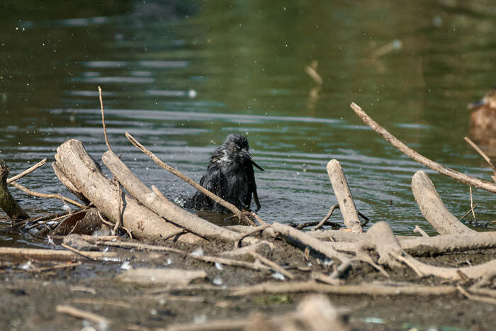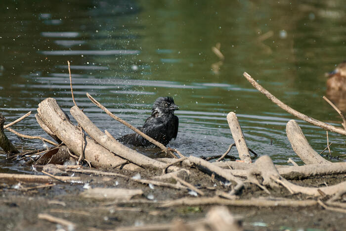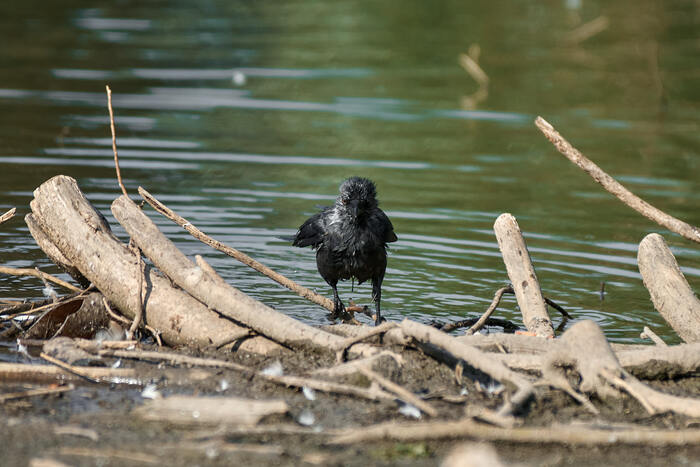 Пару недель назад встретила галку с чрезмерно длинным надклювием. Сначала даже показалось, что она держит во рту червяка, но на фотографии отчетливо видно аномальное развитие. Беглое гугление показало, что это может быть либо врожденный порок, либо поецивирусная инфекция птиц, вызывающая неконтролируемый рост клюва. К сожалению, если птица не научится питаться с таким клювом, она умирает от голода :( Но конкретно эта галка была полна сил и энергии. Постояла, посмотрела, поняла, что вкусняшки от нас ей не светят, и полетела дальше по своим делам.