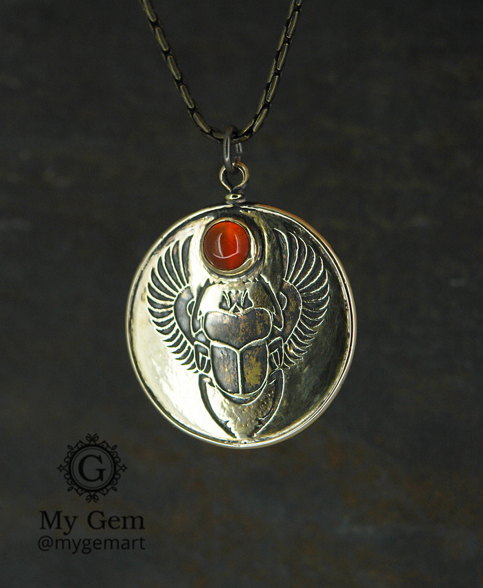 Кулон "Сердоликовое солнце скарабея"