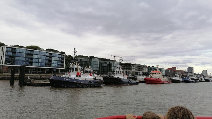 Виды с высоты на порт,на портовый берег Гамбурга,на Шпайхерштадт и Хаффенсити просто захватывали дух.Невероятное зрелище,такая концентрация разных пейзажей в одном месте и времени вызывало впечатление нереальности происходящего.Как будто немного со стороны смотришь сам на себя,а ты ведущий какой-нибудь ТВ программы для туристов.