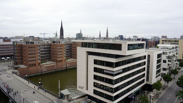 Пройдя сквозь знаменитый Чилихаус,что расположен в квартале Конторхаусфиртель мы вышли к Шпайхерштадту в районе штаб-квартиры издательства Spiegel.