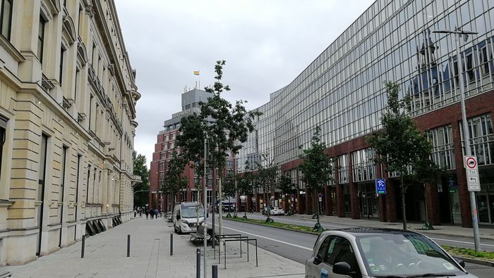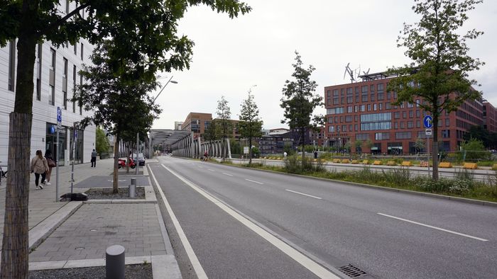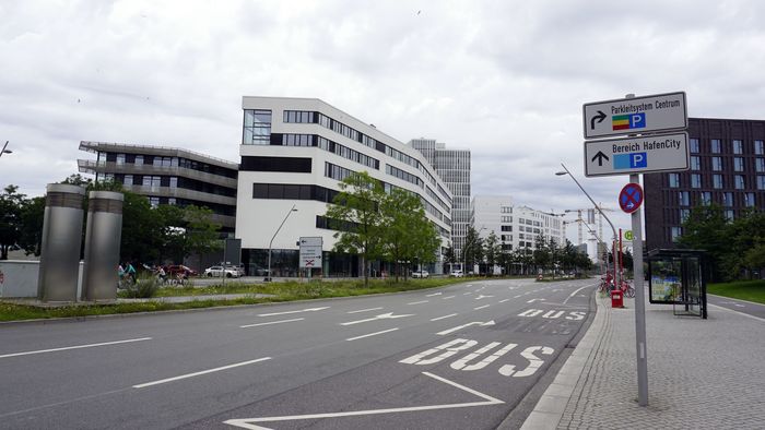 Наглазевшись на строящийся район,пошагали обратно через мост.И мимо Хаффенсити университета попали на улицу,которая и отделяет Хаффенсити от Шпайхерштадта.