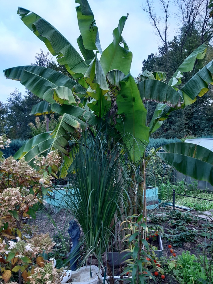 Моя соседка по даче почти пенсионерка решила однажды посадить банановое растение. Живет оно уже пятый год и успешно размножается отпочковыванием. Бананов мы конечно не увидим, климат не тот, но сам факт впечатляет. Растение высотой 5 метров и очень боится заморозков. В этом году впервые за всю жизнь этого растения вся его надземная часть, несмотря на заботливое укутывание, замёрзла. Посмотрим что будет весной.