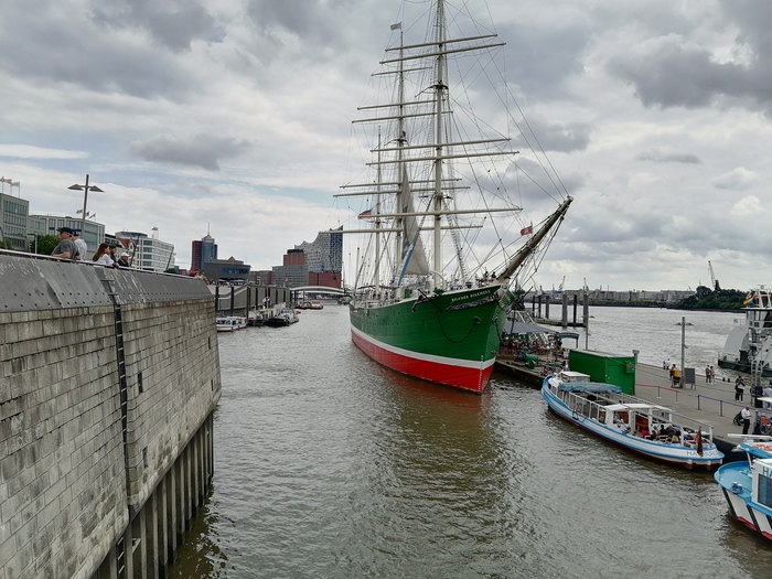 Если вы будете в Гамбурге, а он - город морской, то непременно стоит побывать в гавани, и особенно на музейном корабле Рикмерс. Бывший грузовой парусник, конца девятнадцатого века, 27 лет бороздил океаны под немецким флагом, 14 кругосветных плаваний. Внутри и снаружи очень интересно, особенно если вы интересуетесь морем. Увидеть условия жизни офицеров, капитана и матросов, морской госпиталь, капитанский мостик и устройство палубы, оснастку корабля - всё это очень интересно. Внутри есть экспозиция с историей корабля, фото капитанов, морские навигационные инструменты, а машинное отделение лично меня очень впечатлило. В общем, здорово, что в городе есть возможность побродить по настоящему паруснику, пусть и не старинной каравелле с вензелястыми украшениями. Стоит это всё очень немного - около 6 евро.