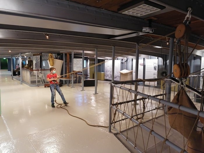 Первая палуба расположена на первом этаже и посвящена навигации и связи. Здесь представлены навигационные приборы, средства связи, глобусы и морские карты, модели маяков, а также различные опознавательные знаки.Сын был в ударе.Всё можно было потрогать,покрутить,подёргать.
