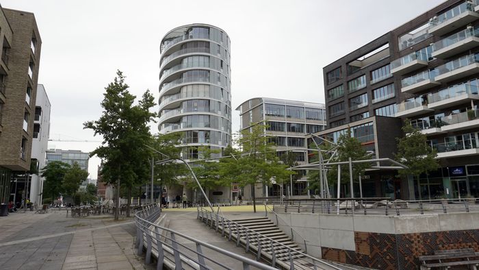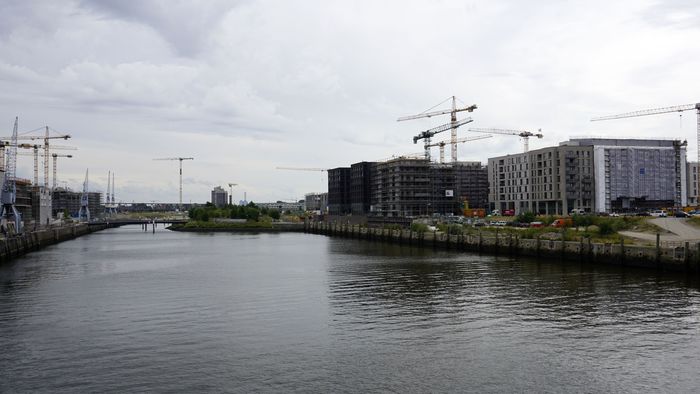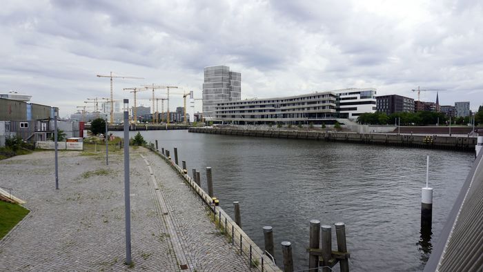 Перейдя мост Бакенхаффенбрюке оценили энергичность строителей в этом районе Хаффенсити.Район готов наполовину.