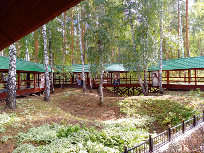 Возвращаемся обратно к галлереи. Собственно, вот она - Открытая шахта №7, в которую в 1918 сбросили останки царской семьи. Если перейти по ссылке выше, то можно почитать историю этого места. А возле шахты установлен поклонный крест. Идем дальше.