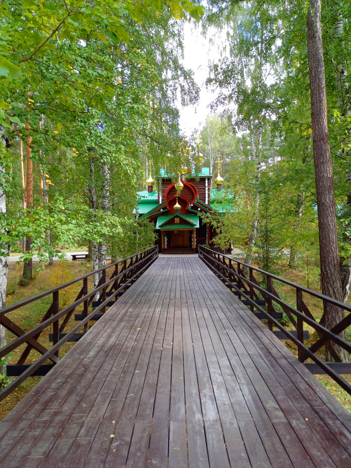 От храма идет деревянный мостик. По нему доходим до памятника "Царским детям".