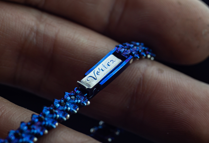 Этот браслет обращается напрямую к нашим древним, глубинным переживаниям. Легкое беспокойство возникает от осознания кем же мы являемся и что с нами станет. Он получил имя "Тонкая костяная нить".