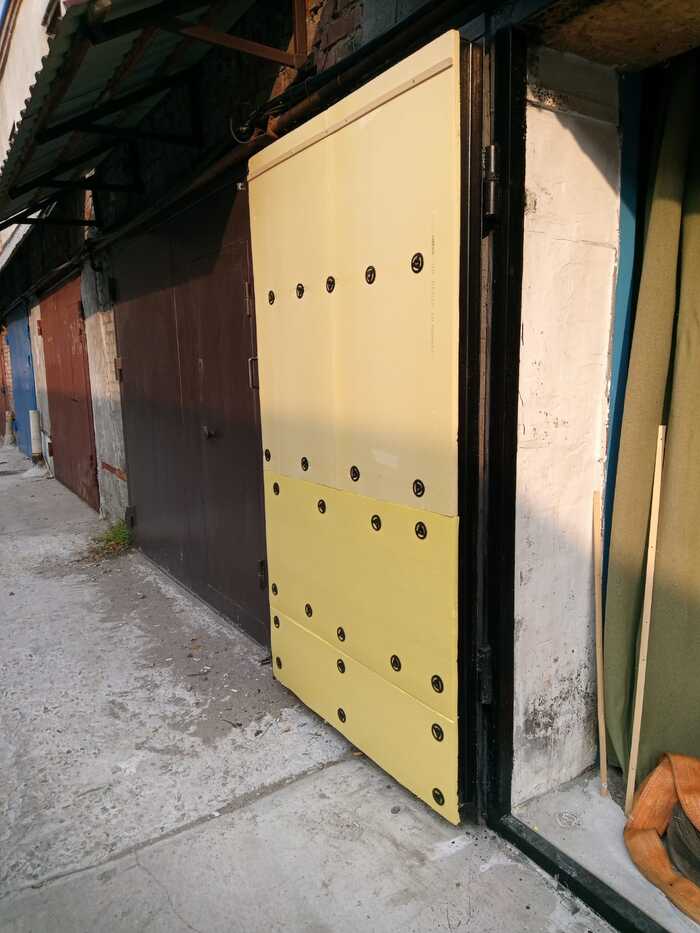 Отведя час на то, чтобы подержаться за голову с мыслью "блин, это руками в одну женскую силу не поднять", я решила уходить в зиму сделав всё, что смогу по любимой технологии. То есть из говна и палок. Щель в двери была задута монтажной пеной, сама дверь обклеена утеплителем внахлёст на всё, что было вокруг. Вход в гараж стал напоминать космическую станцию. Фото в процессе, нужно было сделать за день-два, надвигались морозы.