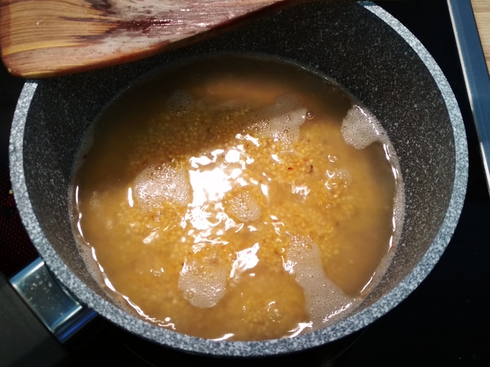Варим крупу 30 минут на среднем огне, не допуская бурного кипения и непрерывно помешивая, чтобы крупа не пригорела.