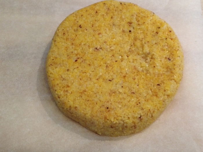 Считается, что лучше мамалыгу выкладывать на деревянную доску или чистое полотенце. чтобы она не отсырела снизу. Я выложил на разделочную доску застеленную пергаментом.