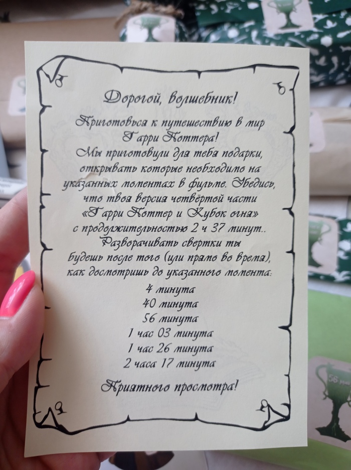 БОКС по 4 части. В нём несколько свертков которые нужно открывать на определенной минуте фильма.