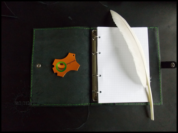Теперь берем блок листиков, вставляем в механизм и вуаля! Наша тетрадь готова!