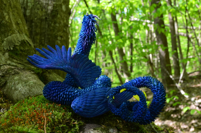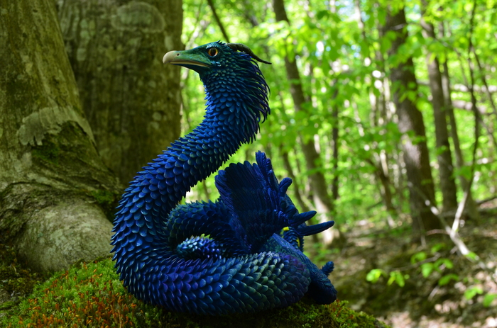 Материалы: бархатный пластик, проволока, акриловые краски, самодельные стеклянные глаза.
