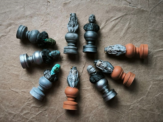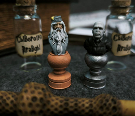 В игре есть такой счетчик выборов, захотелось заменить его, не просто камешком оставить, а сделать фигуркой. И опять столкнулись с муками выбора: какой счетчик выборов выбрать. Как Вы уже понимаете, были разные варианты, сократили до двух, но уже не смогли выбрать и оставили две фигуры: Дамблдора и Волан-де-Морта. А дальше? Дальше их же надо покрасить. Так просто не оставить, нет ну можно, конечно. Но это не то пальто. Какой- то незаконченный вид получался. И опять понеслось. Муж идеально освоил мастерство окрашивания миниатюр. Каких только приемов нет. В итоге научил меня. И они теперь такие красивые)))