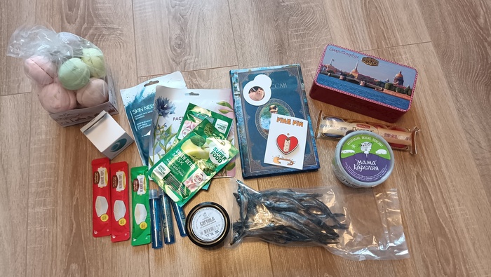 Я получила посылку два дня назад, зефир и снеки оказались неприлично вкусными, поэтому уже сожраны (дитё активно помогало в уничтожении сладкого 😁). На очереди конфетки и варенье. Корюшку приватизировал муж, ещё пока не пробовал. Не забыла Снегурочка и про кота, ему тоже достались вкусняшки и игрушка.