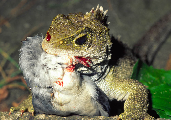 В общем, жизнь ребятки ведут ленивую и спокойную, и поводов для волнений в наше время у них действительно немного, ведь новозеландцы уже несколько десятилетий назад осознали, каким уникальным сокровищем им посчастливилось обладать. Гаттерии не просто находятся под защитой государства. С островов, где они обитают, вывезли всех собак, кошек и свиней, наряду с людьми виновных в исчезновении этих реликтов на главных островах архипелага, и даже уничтожили всех грызунов, которые поедали яйца гаттерий.
