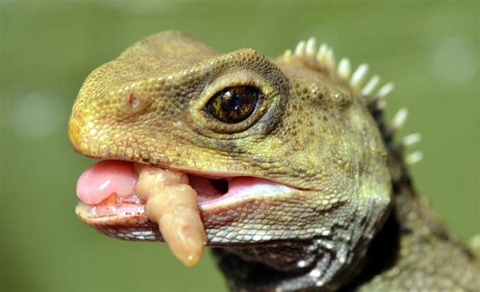 Еще одна удивительная особенность – наличие третьего глаза, помещающегося на темечке. У детенышей теменной глаз отлично виден, но по мере взросления рептилии зарастет чешуёй и становится едва различимым. С его функцией до конца учёные так и не определились, но, вероятно, он как-то участвует в контролировании суточных ритмов и терморегуляции. Этот глаз даже имеет хрусталик и сетчатку с нервными окончаниями, но лишён мышц, а значит не способен к фокусировке. Эксперименты показали, что третьим глазом животинка не видит, но он чутко реагирует на свет и тепло.