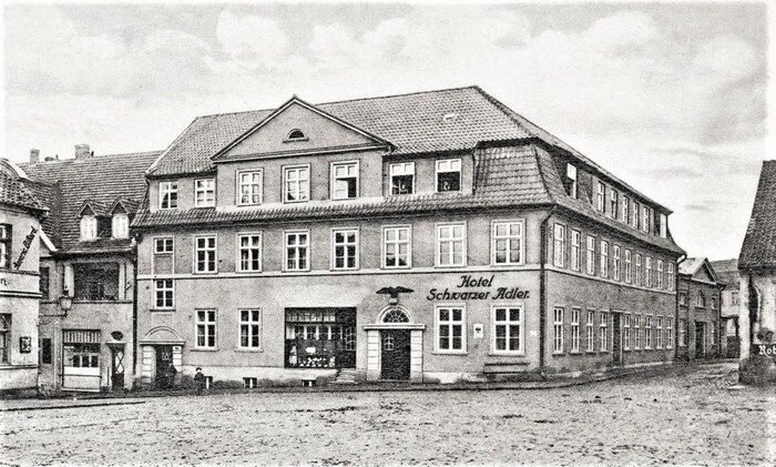 Это скромное здание до войны, вероятно, было хозяйственной постройкой. Сейчас его обветшалые стены хранят память о разных эпохах: