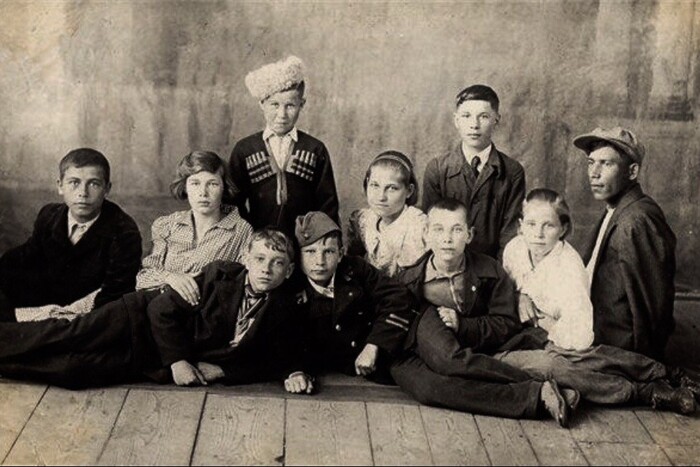 Счастливые юные девочки. Самая красивая, с темными косами – Аня Сопова.