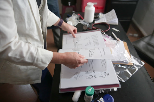 Начинается рабочий день, а вместе с тем и прием пациентов. Обычно они приходят заранее. Вся эта толпа на наших скамеечках у клиники радостно завтракает, пеленает детей, поет народные песни, младенцы под это все торжественно орут, а мамаши пытаются их перекричать, чтобы рассказать друг другу очень важные новости