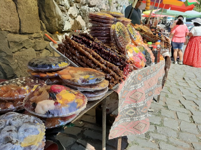 Воспоминания о лете. Армения, торговля сладостями у монастыря Гегард. Очень вкусно. Кто там будет покупайте гату, чурчхель и многое другое не пожалеете. Я пожалела что взяла мало.