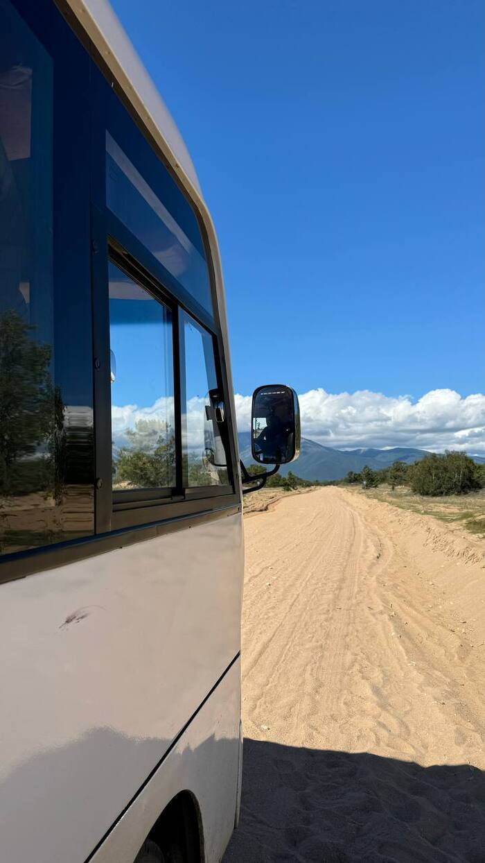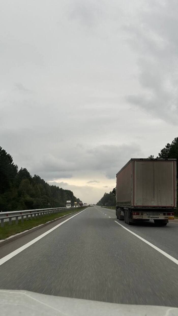 Аринка уверенно села за руль, и мы поехали дальше в поиске остановки на обед! Но, к сожалению, по дороге не попадалось ничего стоящего, бескрайние поля с размытыми дорогами после дождя — это все, что нам светило, а специальных площадок значительно, меньше на востоке 🥹
